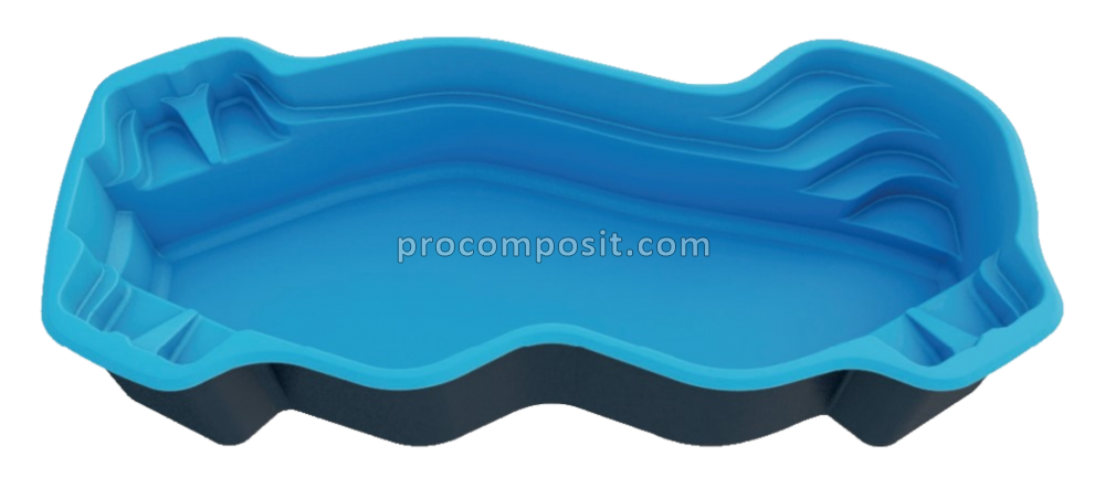 Композитный бассейн имеет лицевую и внутреннюю часть: лицевая часть выполнена из декоративного слоя, который может имитировать камень, дерево или другой материал, и внутреннего слоя из стеклопластика, который придаст прочность и долговечность конструкции.